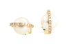 A unique set of 14 carat gold pearl studs each with a halo of 22 brilliant cut diamonds around the center of the pearl.
