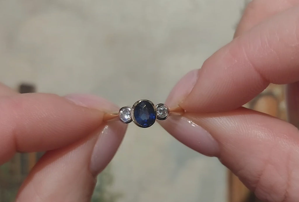 Sapphire and diamond three stone ring-engagement rings-The Antique Ring Shop