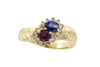 De ring verkeert in goede staat, de robijn en saffier zijn levendige, zuivere stenen.