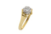 A vintage yellow and white gold solitaire ring with a brilliant cut diamond in a honeycomb hexagonal style setting.