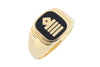 A 14 carat gold signet ring with a ships captain epulette in black enamel.