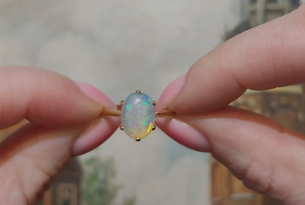 A vintage 18 carat gold ring with an oval cabochon opal stone.
