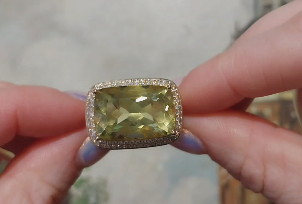 18 carat gold lemon quartz and diamond ring