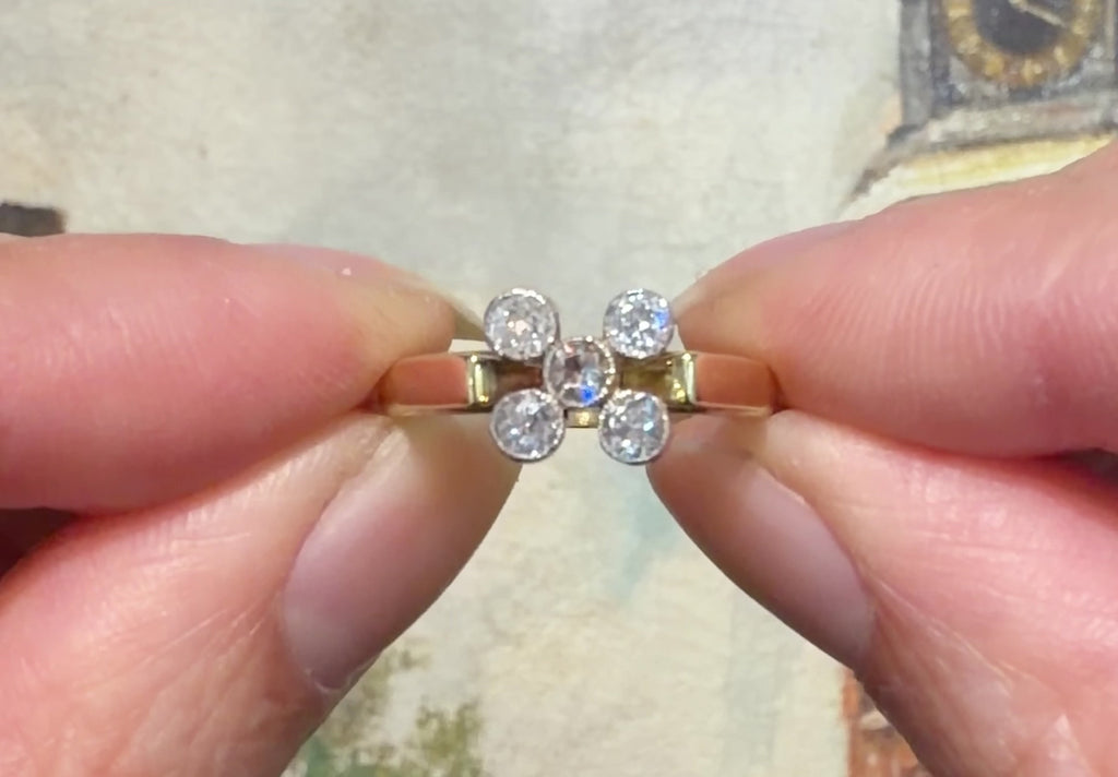 Vintage five stone old European cut diamond ring-Vintage Rings-The Antique Ring Shop